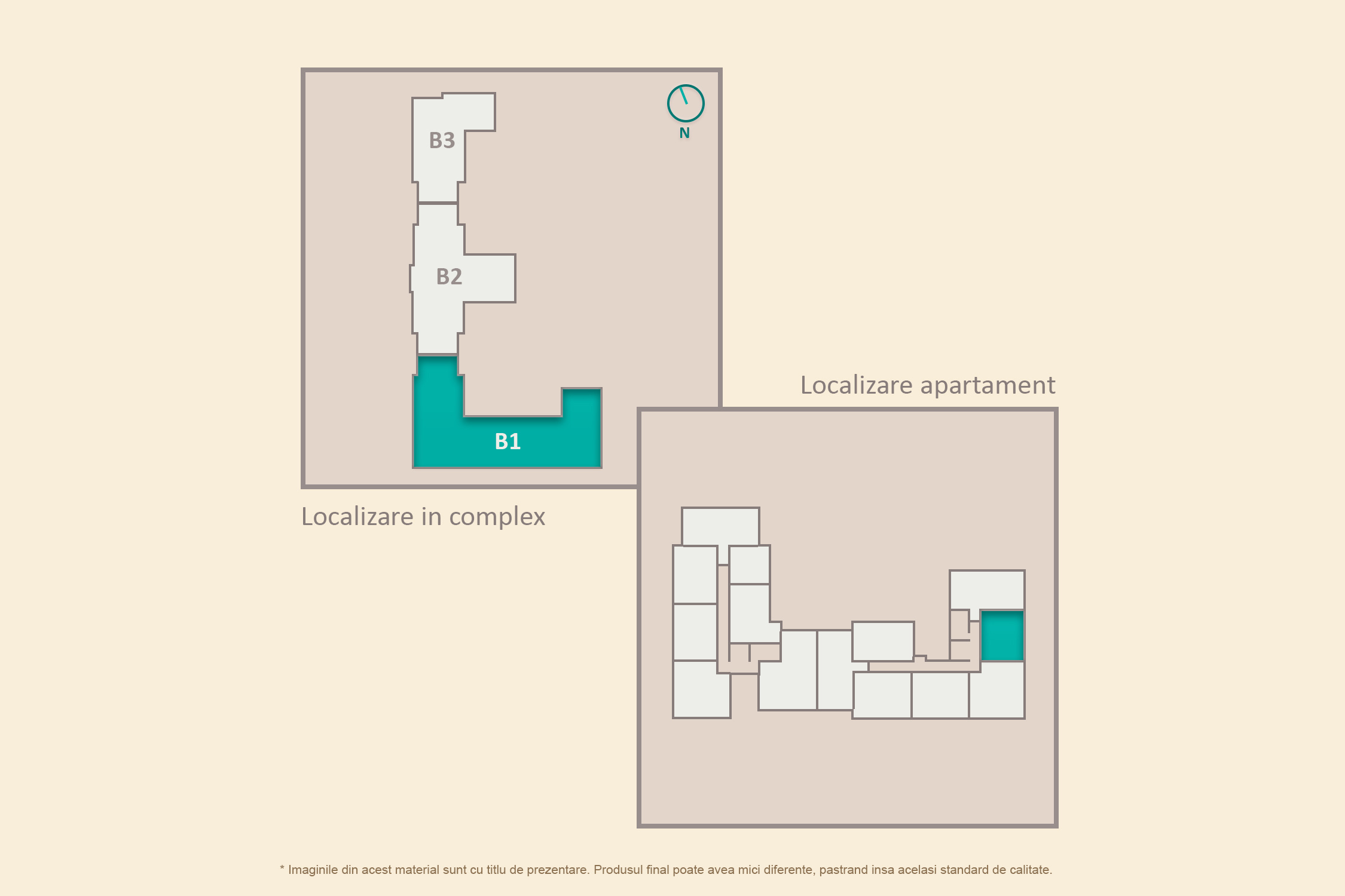 Apartament cu 2 camere tip 2A1, suprafață construită 81.83 mp, (suprafață utilă totală 55.92 mp și terasă de 11.81 mp), semidecomandat, cu bucătăria deschisă, o baie.