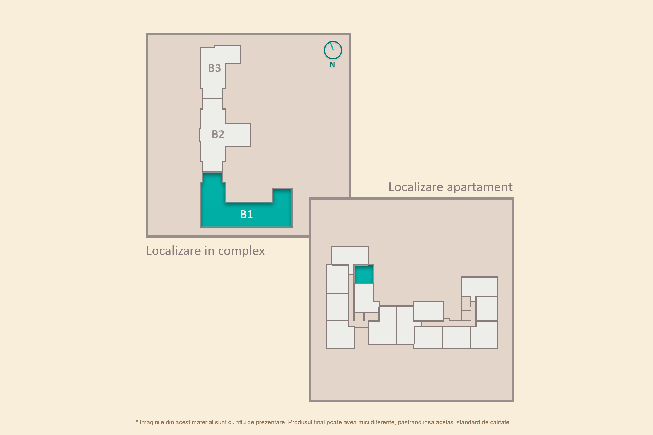 Apartament cu 2 camere tip 2C1, suprafață construită 62.41 mp, (suprafață utilă totală 40.35 mp și terasă de 11.33 mp), semidecomandat, cu bucătăria deschisă, o baie.