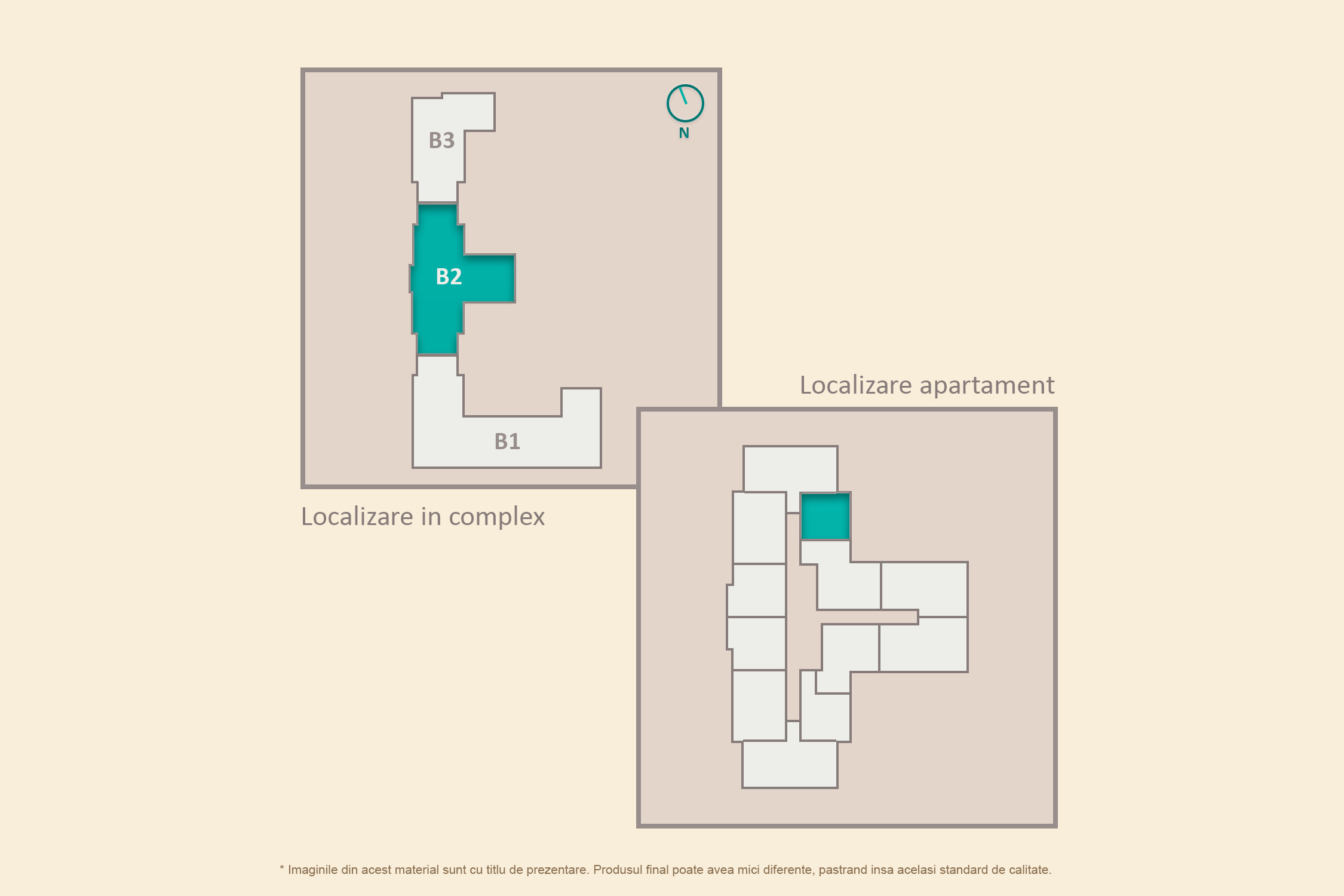 Apartament cu 2 camere tip 2C2, suprafață construită 50.12 mp, (suprafață utilă totală 39.47 mp și terasă de 11.13 mp), semidecomandat, cu bucătăria deschisă, o baie.