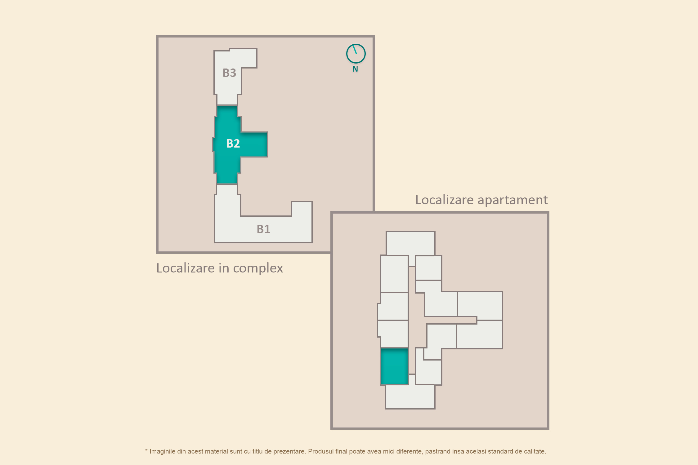 Apartament cu 2 camere tip 2D3, suprafață construită 94.72 mp, (suprafață utilă totală 62.75 mp și terasă de 16.48 mp), semidecomandat, cu bucătăria deschisă, o baie.