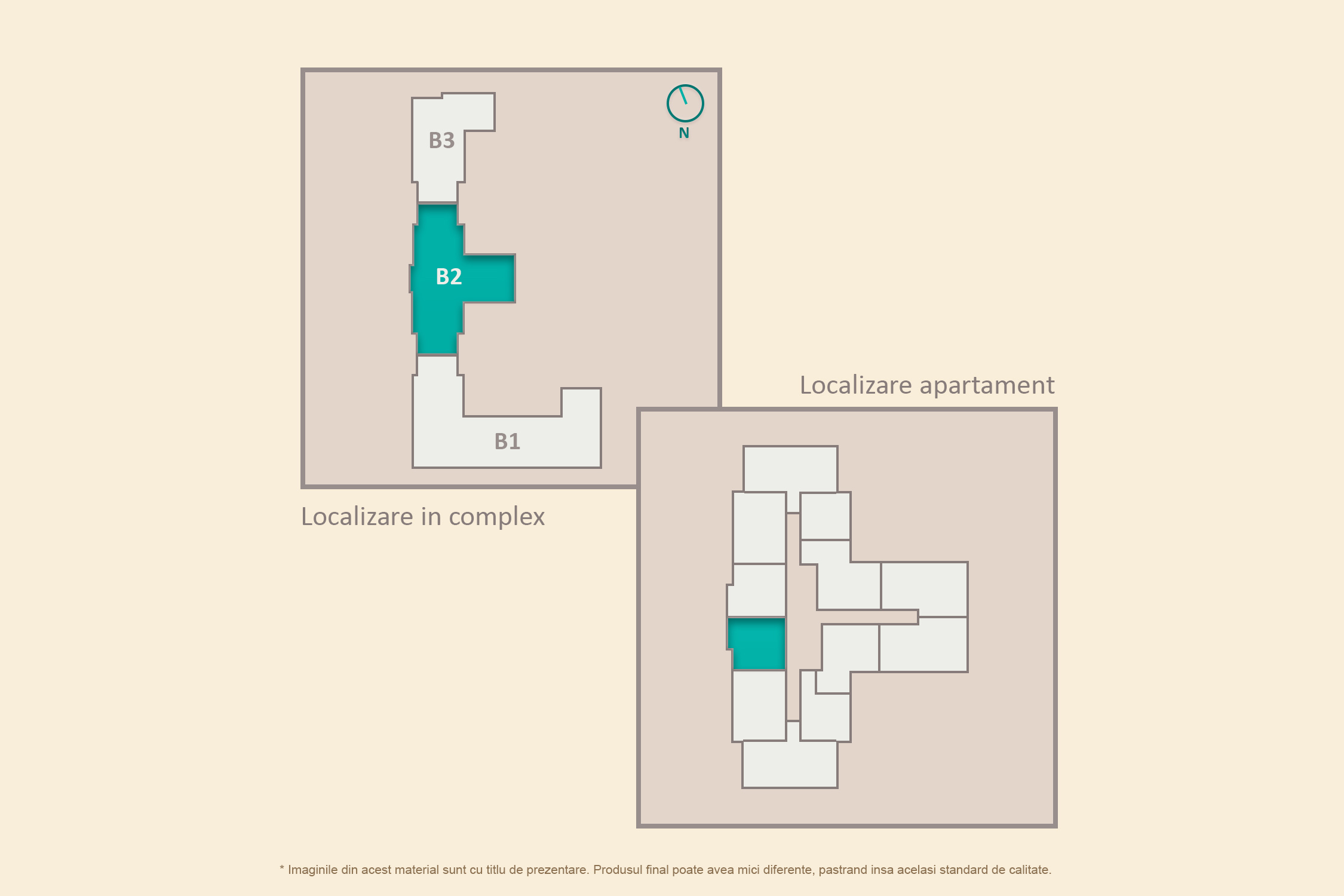 Apartament cu 2 camere tip 2F1, suprafață construită 80.17 mp, (suprafață utilă totală 52.27 mp și terasă de 15.25 mp), semidecomandat, cu bucătăria deschisă, o baie.